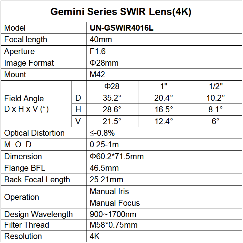 · Lunghezza d'onda: 900-1700 m· Ampia apertura, fino a F1.4